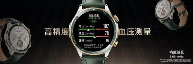 荣耀手表5 Pro不仅支持全天无感血压监测,还提供不校准无感风险评估,支持校准后单次测量,精准血压测量出值,让血压监测不再模糊不清,测量结果一目了然,带来全面领先的血压监测管理的全新体验。