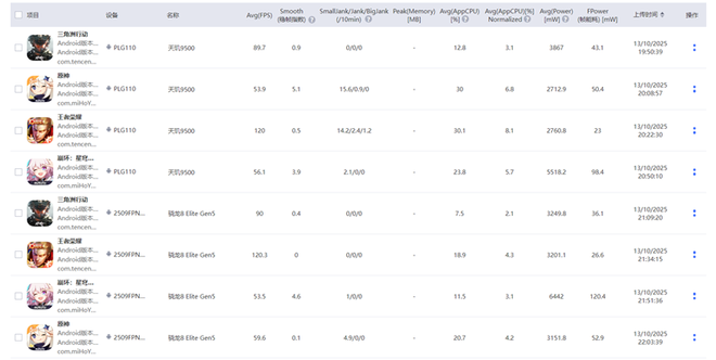 这是性能狗后台数据,可以看出除了《三角洲行动》之外,其他三款游戏天玑9500的能效比都相较骁龙8 Gen5都要更加优秀。