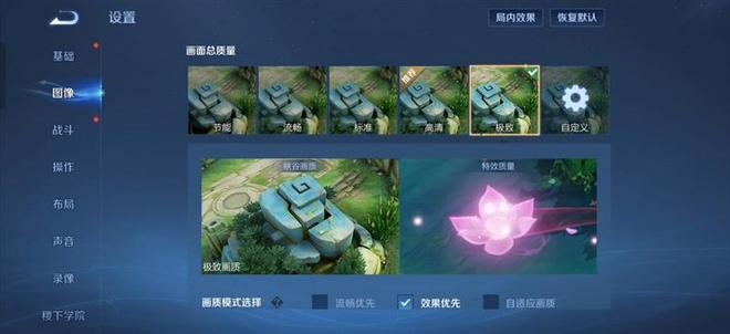 图像质量选择"极高",同时将帧率上限调为60FPS。