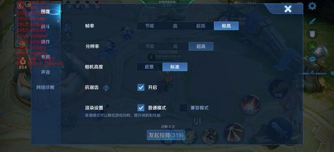 画面质量选择"极致"、帧率"极高"、分辨率"超高"、开启抗锯齿。