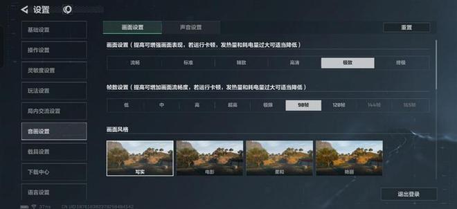 画质选择"极致",帧率锁定90FPS。