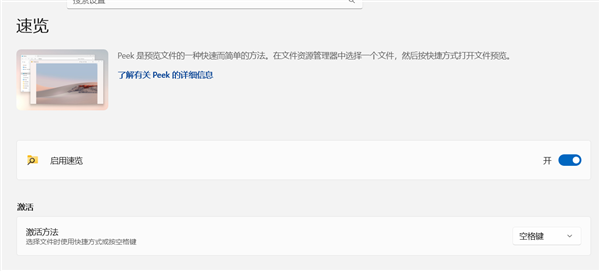 也就是用户可以在文件资源管理器中选择一个文件,按下空格键即可快速预览,常见的图片和视频文件可以瞬间打开,较大的文件可能需要稍长时间来加载。