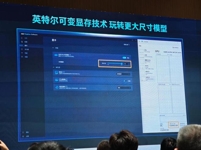 内存架构的革命性突破,是英特尔此次技术展示的基石。长期以来,集成显卡的显存配置如严重制约了大型模型在端侧设备上的运行潜力,即使一些设备能够在BIOS当中调整显存分配,但是繁琐的设置过程以及固定分配对于系统内存的占用都影响着使用体验。而英特尔推出的“共享GPU内存覆盖”技术,彻底打破了这一桎梏。用户可通过英特尔显卡控制面板,在5%至95%的宽泛区间内,自由调节系统内存分配给显存的比例。这种动态调配能力意味着,在128GB系统内存的豪华配置下,高达120GB的空间可转化为显存,在96GB配置上也能释放出90GB的庞大显存资源。更具革命性的是其独特的并行访问机制,CPU与集成显卡能够同时访问这片共享内存区域,既确保了大模型对显存的渴求,又保障了系统多任务处理的流畅性,这种精妙的平衡设计,展现了英特尔在系统架构优化上的深厚功力。正是这一“大显身手”的创新,让千亿模型在轻薄本和迷你主机上运行成为可能。