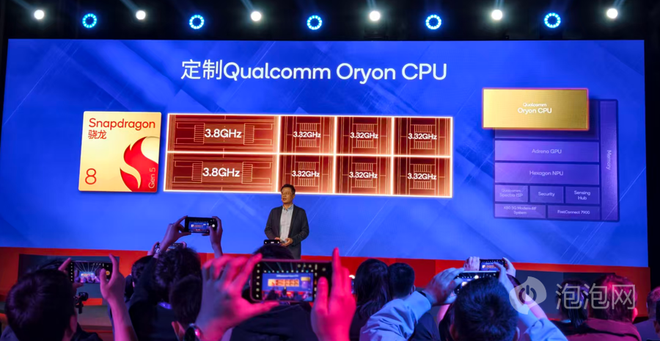 第五代骁龙8移动平台首次将高通自研的Qualcomm Oryon CPU架构引入标准旗舰层级。该CPU采用2个超级内核+6个性能内核的先进设计,专为瞬时响应、多任务处理和持久续航而优化。