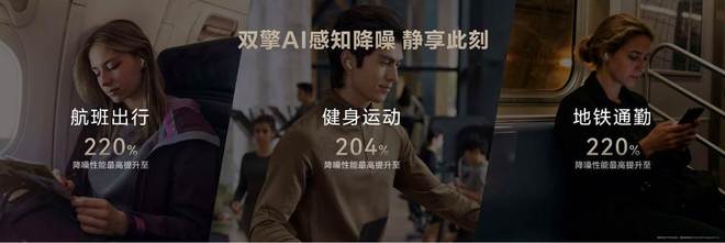 不局限于单纯减弱噪音,HUAWEI FreeBuds Pro 5的降噪体验再次升级,首次采用了双单元双路主动降噪架构,高低音两颗声学单元协同工作,共同针对噪声发出反向声波降噪。耳机搭载全新MIMO AI感知模型,主动感知环境噪音变化,实时匹配最佳的降噪参数,较上代产品降噪效果提升最高220%,无论是健身房、办公室,还是地铁、飞机等嘈杂环境,用户皆可隔绝外界噪音干扰,专注于纯净聆听体验。