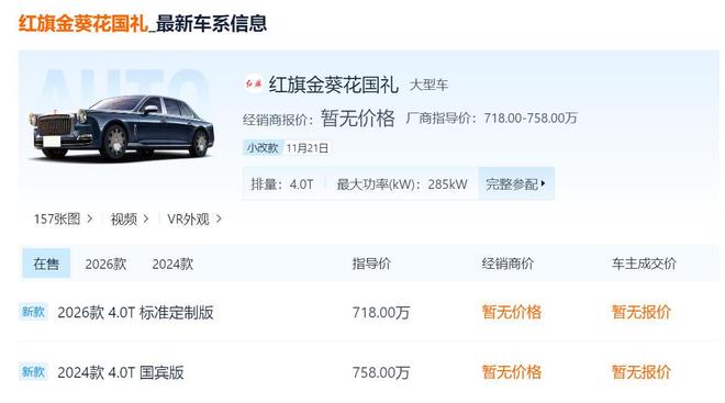 写在最后:总的来说,红旗金葵花国礼“丹霞”定制版卖718万的售价,支撑它的不是钢板、发动机和真皮的成本,而是一套组合拳。