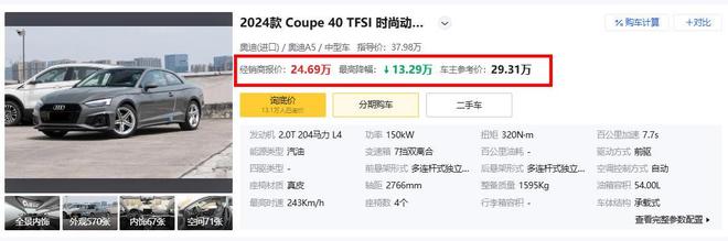 进口奥迪A5动力升级,价格跌破24万,A5L车主直呼后悔未等!