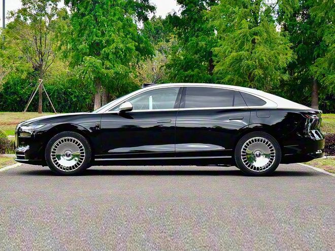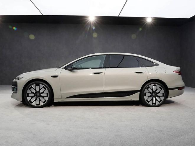 国产车型前脸采用大面积的黑化造型,显得前格栅向两侧拓展,将前大灯和两颗激光雷达隐藏了起来,新车还采用了分体式车灯设计,日行灯可以展示8种不同的图案,下部为矩阵式大灯。尺寸上,新车长宽高分别为5073/1942/1522mm,轴距为3076mm。