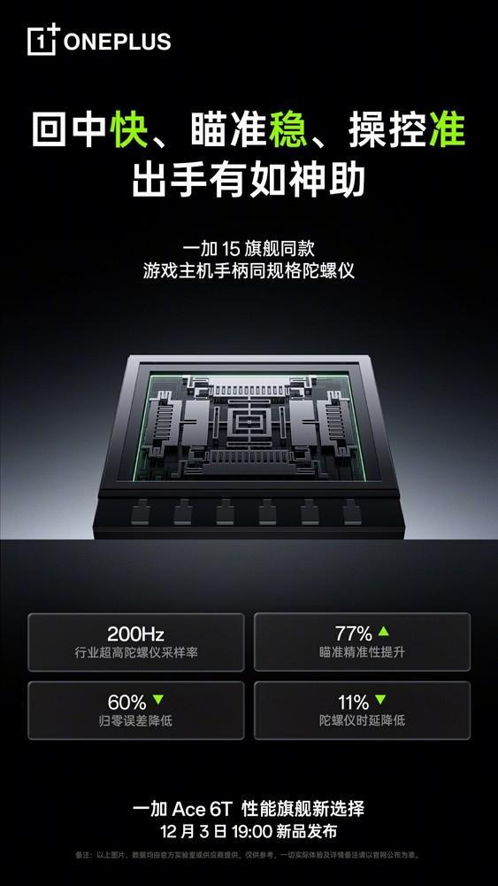 一加Ace 6T配置升级,搭载旗舰级陀螺仪,总裁称其为核弹级配置
