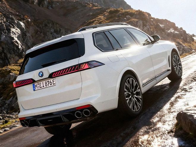 细节方面,竖向的日行灯延伸到了下方的主灯上,形成了一个L灯型。尾部造型也比较简约,看上去和iX3类似,并且标配了天地门。四出排气管则表明燃油版可能依然搭载4.4升V8发动机。