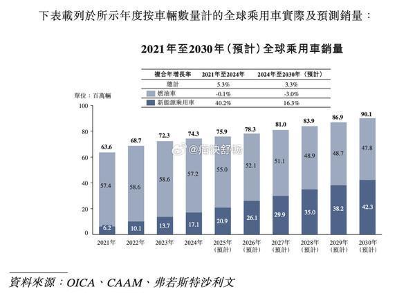 根据最新预测,未来十年全球乘用车销量将持续增长,其中新能源车辆将成为增长主力,随着环保意识的提高和技术的不断进步,新能源汽车市场将迎来爆发式增长,预计在2021年至2030年期间,全球乘用车销量将受到新能源车辆的强劲推动,展现出巨大的市场潜力。