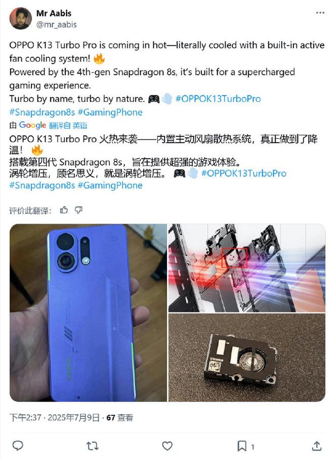 OPPO K13 Turbo外观跑分曝光:自带物理风扇外挂!
