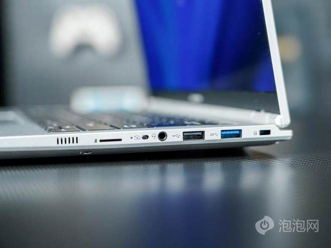 机身右侧配备了一个安全锁孔、一个USB-A 3.2 Gen1接口、一个USB 2.0接口、一个3.5mm音频复合接口以及一个MicroSD读卡器,方便摄影师等用户快速导入资料。机身右侧还设置了一个摄像头物理电控开关,只需轻轻一拨即可从硬件层面切断摄像头电源,为用户隐私安全提供了一道坚实的物理屏障。