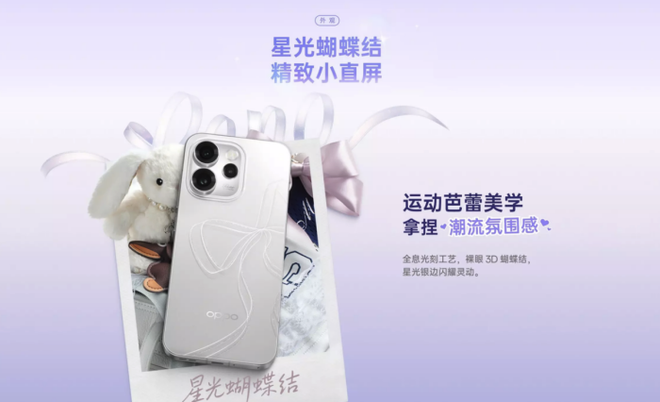 外观方面,Reno15 系列依旧延续 OPPO 一贯的高颜值路线,全新的「星光蝴蝶结」配色采用行业首发的全息光刻工艺,将漫天星沙凝聚成裸眼 3D 的蝴蝶结纹理,光影流动之间极具辨识度。机身的金属中框搭配冷雕玻璃,使整体手感顺滑细腻,质感进一步提升。Reno15 标准版提供星光蝴蝶结、极光蓝与可露丽棕三种配色,Reno15 Pro 则包含星光蝴蝶结、蜜糖金与可露丽棕三款配色,清爽又不失高级,不论你喜欢温柔、酷感或活力风格,都能找到心仪选择。