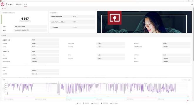 i7-14700照片编辑基准测试分数4697,图形装饰分数7426,批处理分数2972。