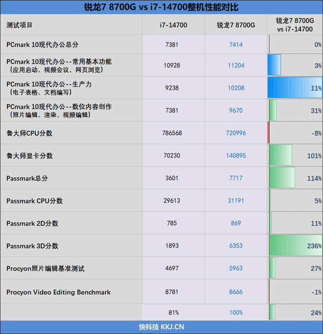 锐龙7 8700G商用机65W功耗完胜酷睿i7-14700
