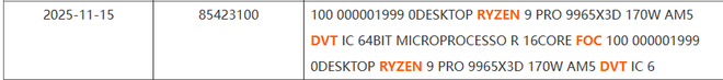 AMD锐龙9 PRO 9965X3D现身海关舱单,商用市场的新宠X3D技术?