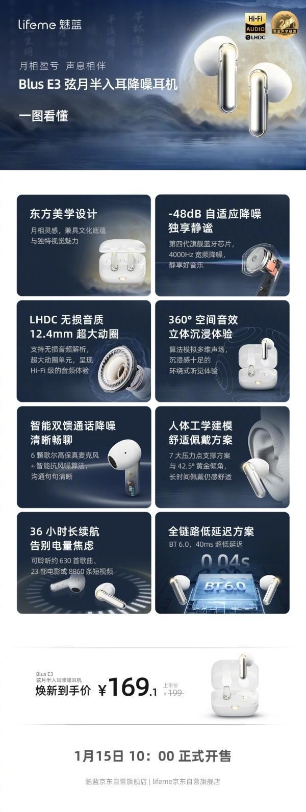1月15日,魅蓝举行新春新品发布会,发布了三款耳机。它们分别是Blus 4 Hi-Fi降噪耳机,上市价329元;Blus E3弦月半入耳降噪耳机,上市价199元;H1 Pro Hi-Fi版头戴式降噪耳机,上市价219元。