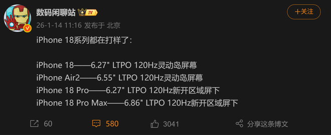 你更期待iPhone 18 Pro的屏下Face ID,还是iPhone阔折叠的全新形态?欢迎在评论区聊聊你的看法~
