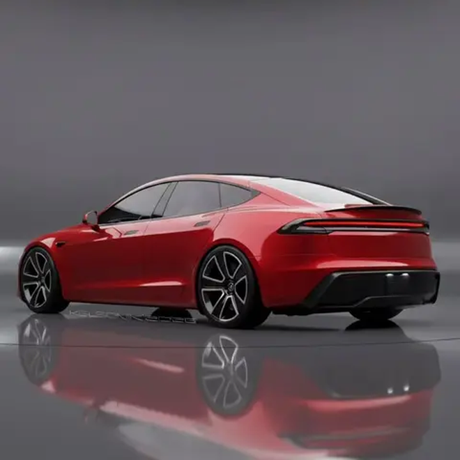 在车尾部分,贯穿式尾灯的设计与车头呼应,灯组同样采用纤细的造型,点亮后辨识度极高。此外,新车还增添了一个小型扰流板,进一步提升了运动感。车侧轮廓基本延续了现款Model S的溜背设计,但细节处进行了一些变化,比如可能会采用新一代隐藏式门把手,并搭配全新样式的多辐式轮毂,从而在降低风阻的同时,令车身侧面看起来更加平整流畅。