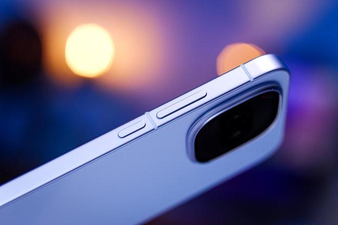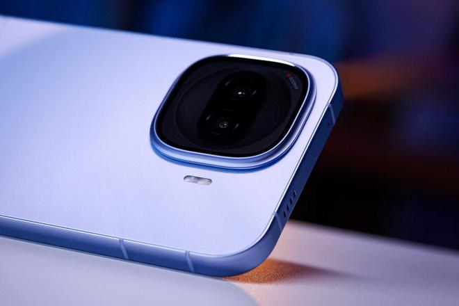 我们这台是沧浪浮光配色,浅蓝色的背板上有海浪纹理,改变光照角度还能看到光影流转。相机Deco采用了阶梯式缓坡设计,看起来边框更窄,凸起更小。内部双摄采用了类似iQOO Neo11的悬浮设计,看起来更加灵动。