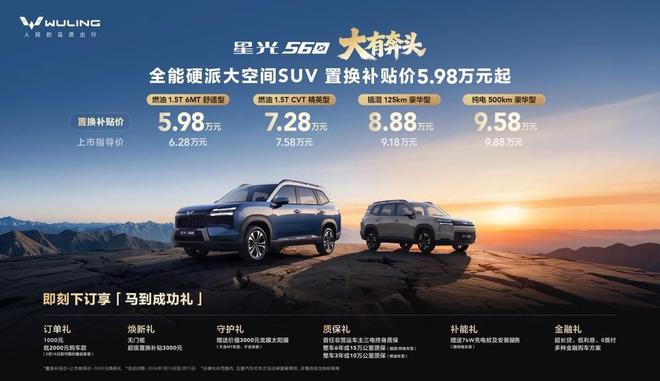 五菱星光560正式上市,提供燃油、插混和纯电多种选择,新车限时优惠价起至5.98万,能否热销引人关注,五菱星光560凭借其出色的性能、舒适的驾乘体验和实惠的价格,有望在市场上取得良好的销售业绩,具体表现还需市场验证。