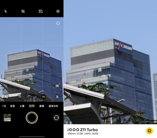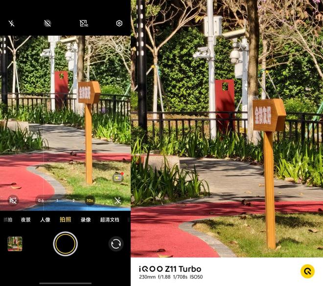 在影像配置上,iQOO Z11 Turbo 搭载了一颗 2 亿像素大底主摄,采用 1/1.56 英寸 HP5 旗舰级传感器。在白天光照充足的场景下,高像素与大尺寸感光元件的组合能够带来更出色的细节解析力与动态范围表现。