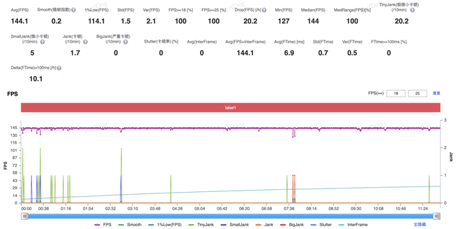 在游戏实测方面,天极网对 iQOO Z11 Turbo 进行了《王者荣耀》极致画质 + 144 帧的游戏测试。整局游戏过程中画面表现十分稳定,体验丝滑流畅,平均帧率基本维持在 144 帧左右,1% Low 帧约为 114 帧,平均功耗约 3.8W。连续游玩约半小时后,机身温度仅呈现温热状态,整体发热控制表现出色。