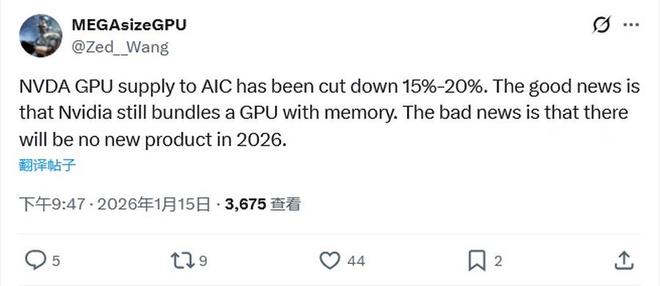 英伟达游戏卡供应削减传闻,年内无新品推出