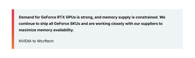 英伟达先后向Hardwareluxx及Wccftech两家外媒发出声明,表示GeForce RTX GPU需求强劲但显存供应受限,公司正全力保障全系SKU出货。但知名消息人士MEGAsizeGPU爆料,英伟达已削减AIC合作伙伴15%-20%的供应规模,此举或进一步推高显卡价格,意味着危机才刚开启。
