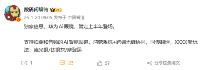 随着AI技术浪潮席卷全球,AI眼镜正加速从概念走向消费级落地,成为智能穿戴领域的核心增长点。在政策扶持与技术迭代的双重驱动下,各大厂商纷纷加码布局,市场迎来产品密集爆发期,华为也即将加入战局。今日,数码博主“数码闲聊站”首次曝光华为新款AI眼镜,新品暂定于今年上半年正式登场,引发行业广泛关注。
