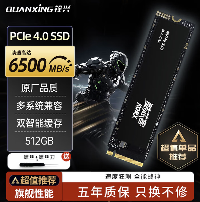 它还配备了石墨散热贴,配合主控的低功耗优化,长时间读写也能控制温度,避免掉速。质保方面,提供5年/600TBW的保障,作为入门级PCIe 4.0产品,诚意十足。支持PCIe4.0接口的新装机、AI PC,适合作为系统盘+常用软件盘,追求开机秒开、软件秒加载的流畅体验,512GB容量也足够日常办公、轻度游戏使用,预算有限且想体验PCIe4.0速度的用户优先考虑。目前512GB版本售价469元,作为系统盘还是非常不错的。