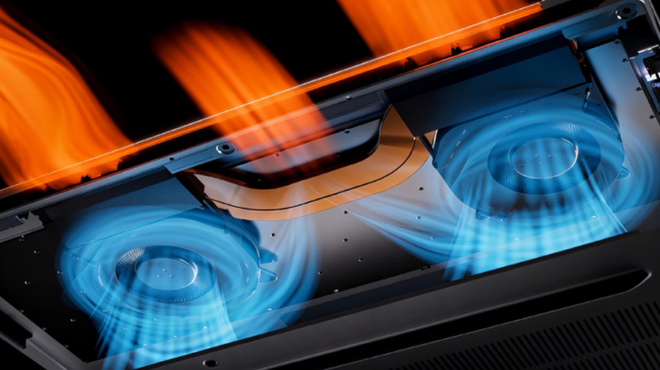为了保障设备持续的高效运行,它采用了华硕冰锋Pro散热架构,采用内吹风道设计,配合75mm超大直径游戏本级大风扇、D10超粗热管、纯铜制鳍片,最高可实现85W的总性能释放,并且大幅降低高负载下的键盘温度,让你在体验高性能的同时,保持清凉远离发热。