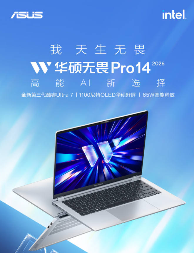 华硕无畏Pro16 2026酷睿版来袭:第三代酷睿Ultra加持,工作娱乐轻松拿捏