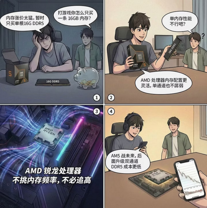 拒绝内存焦虑!AMD 锐龙5 9600X搭配单通道DDR5战未来