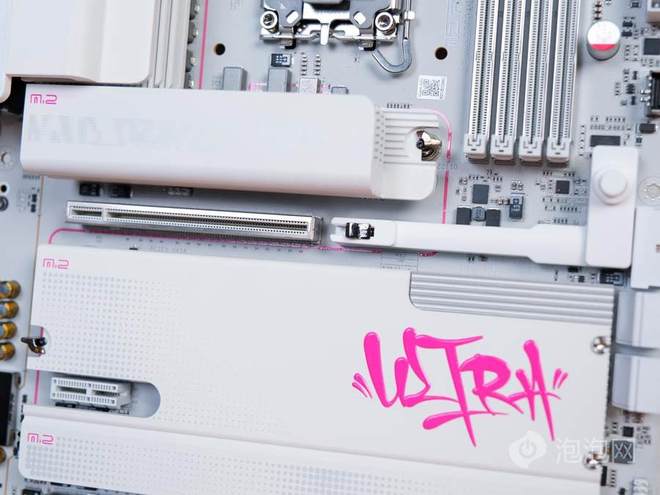 除此之外,这块主板还有着超强的硬件配置,20+1+1+1相90A DrMOS强悍供电、固态聚合物铝电容与8层低损耗PCB、稳定支持双通道DDR5 9600+MHz高频内存、5个最高支持PCIe 5.0的新一代快拆M.2接口、支持规格与第二代M.2快拆设计、前置USB4 40Gbps Type-C等等卖点让这款主板不但能够成为新一代纯白旗舰主板当中的优选,也能充分释放出Ultra 7 270K Plus的潜力。