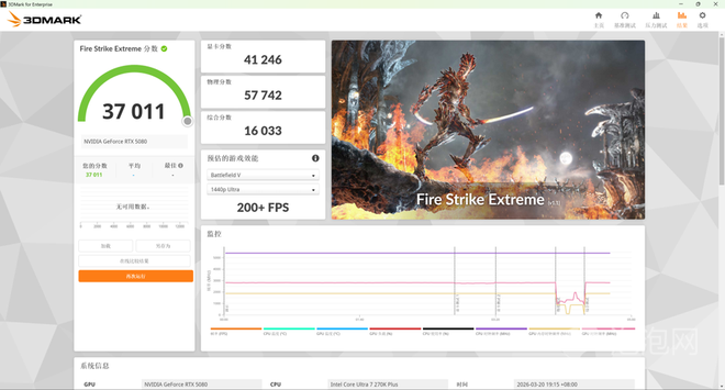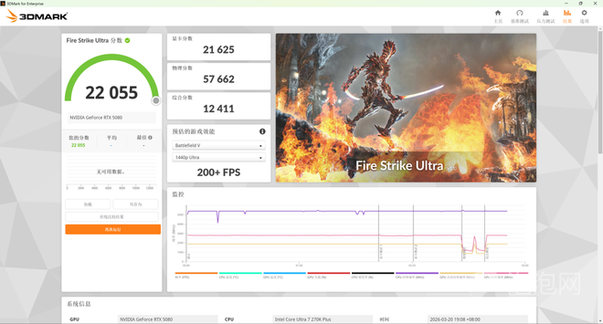 而在Fire Strike、Fire Strike Extreme Fire Strike Ultra三个场景下,Ultra 7 270K Plus的物理分数分别为57662/57742/56680,对比上代Ultra 7 265K有着13%左右的领先,代际提升也十分明显。