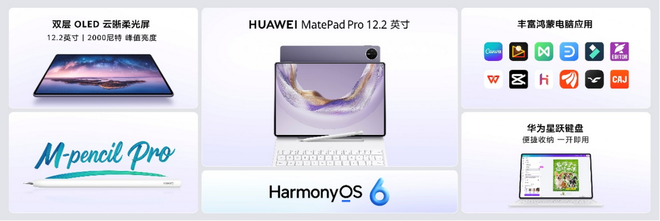 华为MatePad Pro 12.2 英寸搭载丰富鸿蒙电脑应用,天生会画App悬停预览再升级,12mm悬浮高度助力精准操作;华为MatePad Mini 悦读版超轻薄机身设计,配合华为阅读App带来AI眼动翻页、AI动态图书功能,让阅读更沉浸有趣。