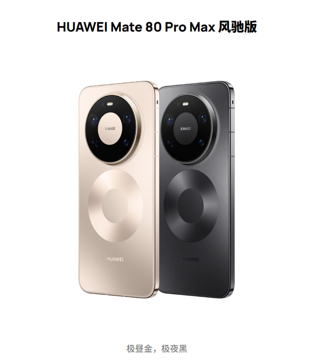 华为Mate80 Pro Max风驰版延续了此前Mate80 Pro Max的设计,在外观上两款手机基本保持一致,不过华为Mate80 Pro Max风驰版仅提供极夜黑与极昼金两种配色。
