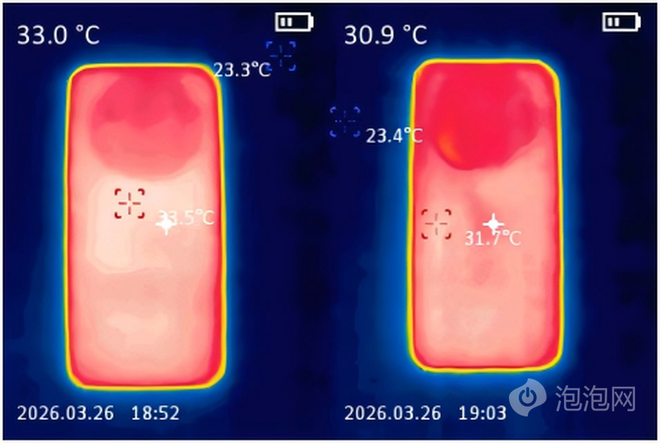 在实测中,我们使用华为Mate80 Pro Max风驰版进行30分钟《王者荣耀》测试,在未开启风扇的情况下,机身温度为33.5℃,开启风扇游戏时,机身温度为31.7℃。