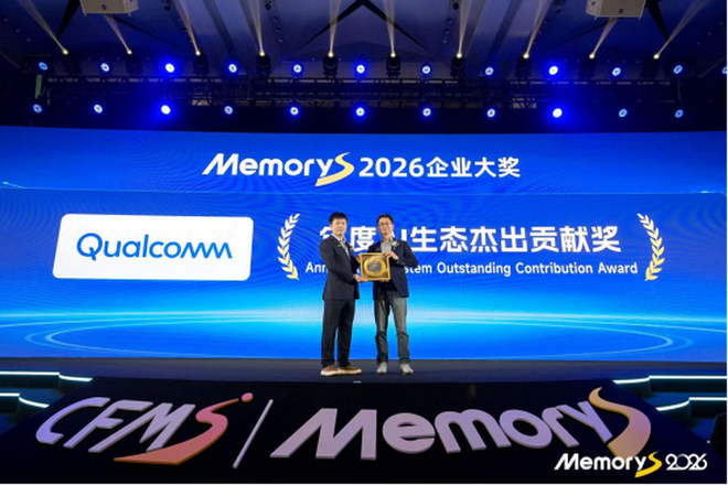 此外,为表彰产业链内的杰出企业与领军人士,彰显行业标杆力量,MemoryS大奖也在本次峰会期间颁布,通过将业务从智能手机扩展至个人AI与智能可穿戴设备、PC、汽车、边缘网络以及工业物联网等广泛边缘领域,引领构建“边缘智能生态”,推动AI在万物互联终端上真正实现低延迟、高安全的本地化落地,高通公司荣获“年度AI生态杰出贡献奖”。