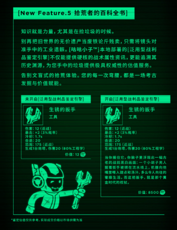 而在捡垃圾的时候,[咕咕小子]本地部署的[泛用型战利品鉴定引擎]不仅能提供硬核的战术属性资讯,更能追溯其历史渊源,为您手中的垃圾提供极具权威性的估值服务。