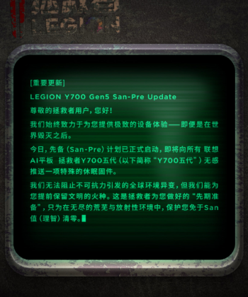 拯救者今年并没有发布硬件“新品”,而是带来了拯救者【先备(San-Pre)计划】,将向联想AI平板拯救者Y700五代无感推送一项重要更新,为应对未来可能出现的全球环境异变,保障用户和设备在极端条件下的体验,未雨绸缪地做好了先期准备。