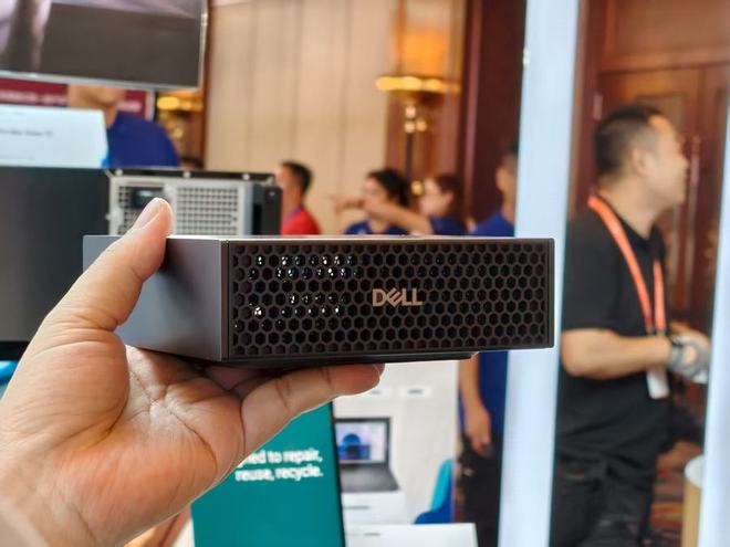 Dell Pro Max with GB10最引人注目的特点之一,是其极致紧凑的设计。整机体积仅为1.2升,大小约如一本普通字典,轻巧到可轻松放入背包甚至口袋,因此被誉为“掌上超算”。